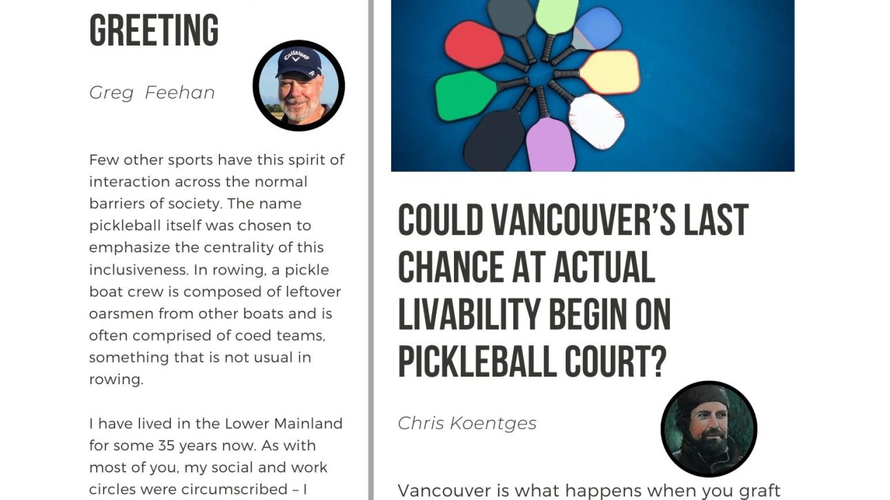Building and Keeping Our Community Connected The VanCity Pickler is the Vancouver Pickleball Association’s quarterly newsletter publication. Have an idea for a future edition? Have a question? Email: newsletter@vancouverpickleball.ca